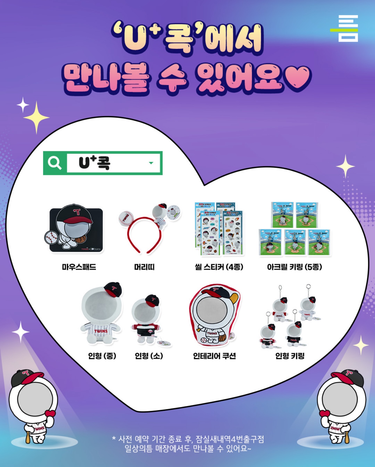 ⚾ 사전 예약 기간 종료 후, 일상의틈 잠심새내역 4번 출구점 매장에서 만나볼 수 있습니다.